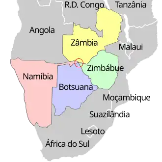 - ↑ Ian Brownlie e Ian R. Burns (1979). «Botswana-Zâmbia (Quadripoint issue)». African Boundaries: A Legal and Diplomatic Encyclopaedia. [S.l.]: C. Hurst & Co. pp. 1098–1108. ISBN 0-903983-87-7