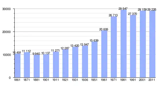 | Variação demográfica do município entre 1861 e 2011[3] |