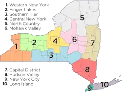 - Região I: Connecticut, Maine, Massachusetts, New Hampshire, Vermont e Rhode Island