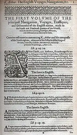- ↑ Hakluyt, Richard (1599). Goldsmid, Edmund, ed. The Principal Navigations, Voyages, Traffiques and Discoveries of the English Nation 1885 Fourth ed. London and Aylesbury: Hazell, Watson & Viney Limited