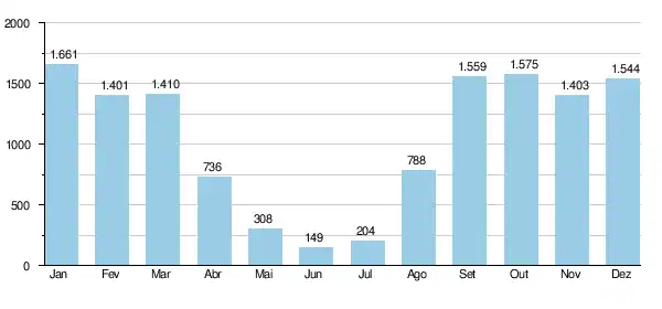 O fluxo médio mensal do rio Níger medido na estação hidrológica de Malanville (em metros cúbicos por segundo)