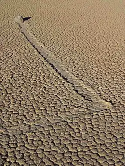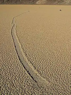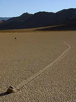 - ↑ Norris, Richard D. et al. "Sliding Rocks on Racetrack Playa, Death Valley National Park: First Observation of Rocks in Motion". In: PlosONe, 2014;