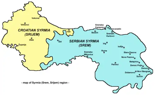 As maiores cidades da Sírmia são Sremska Mitrovica (Mitrovitsa da Sírmia), do lado sérvio, e Vukovar, do lado croata.