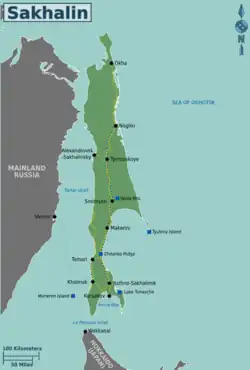 Sacalina[1][2][3] ou Sakhalin (em russo: Сахалин; romaniz.: Sakhalín; em chinês: chinês tradicional: 庫頁; chinês simplificado: 库页; romaniz.: Kùyè) é uma grande ilha (948 km de comprimento, 160 km de largura) no Extremo Oriente russo, banhada pelo mar de Ocótsqui a norte e a leste; pelo estreito de La Pérouse a sul, separando-a da ilha japonesa de Hokkaido; e pelo estreito da Tartária a oeste, separando-a do continente asiático. É um território constituinte do Oblast de Sacalina