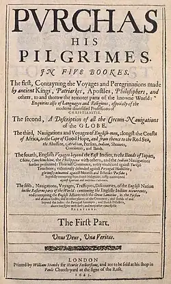 - ↑ «Samuel Purchas | Travel Writer, Pilgrim's Progress, Historian | Britannica». www.britannica.com (em inglês). Consultado em 24 de julho de 2023