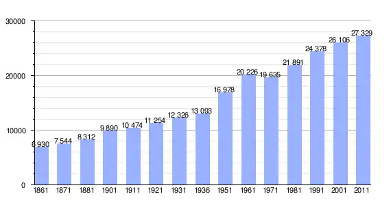 | Variação demográfica do município entre 1861 e 2011[3] |