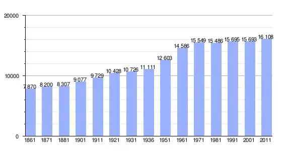 | Variação demográfica do município entre 1861 e 2011[3] |