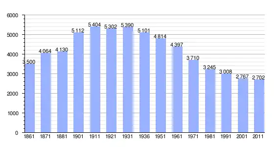 | Variação demográfica do município entre 1861 e 2011[3] |