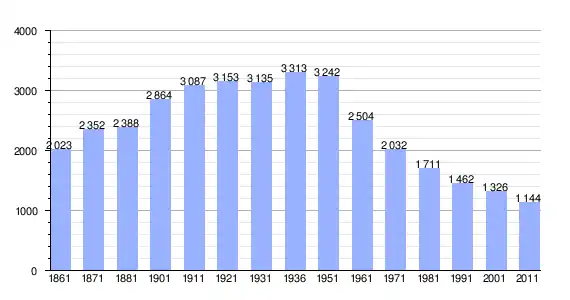 | Variação demográfica do município entre 1861 e 2011[3] |