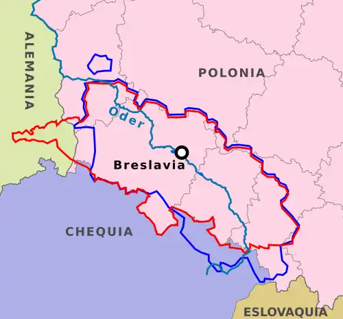 Em 1945, toda a Silésia foi ocupada pelo Exército Vermelho soviético. Até então uma grande parte da população alemã havia fugido da Silésia, mas muitos retornaram após a capitulação alemã. Sob os termos dos acordos da Conferência de Ialta de 1944 e da Conferência de Potsdam de 1945, a maior parte da Silésia a leste dos rios Oder e Neisse foi transferida para a Polônia. A maior parte dos silesianos alemães remanescentes, que antes da segunda guerra eram cerca de quatro milhões, foram mortos ou forçadamente expulsos. Uma pequena parte da Silésia, em torno da cidade de Görlitz, passou a fazer parte da Alemanha Oriental, sendo agora parte do Estado Federal da Saxônia na atual Alemanha.