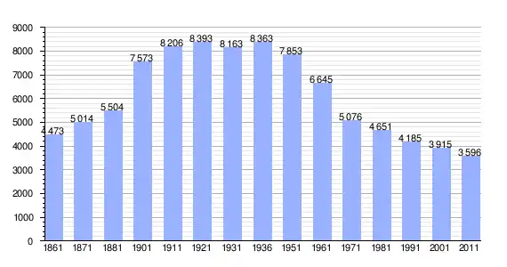 | Variação demográfica do município entre 1861 e 2011[3] |