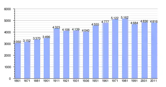 | Variação demográfica do município entre 1861 e 2011[3] |