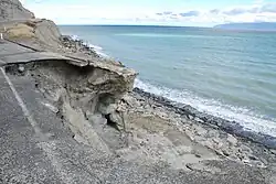 A erosão costeira é outro dos efeitos esperados e já vem sendo observada, ocasionando o recuo da linha de areia nas praias, mudanças no perfil dos litorais e destruição de infra-estruturas litorâneas construídas pelo homem, como barragens, estradas e habitações.[12] Por exemplo, no estado brasileiro da Paraíba, a situação já é grave, com 42% do litoral registrando erosão, colocando um milhão de pessoas sob ameaça direta. Uma pesquisa levada a cabo pelo Ministério do Meio Ambiente mostrou que 70% do litoral do Brasil apresentou tendência de erosão nas últimas décadas,[13] e projeta-se que até 42 milhões de brasileiros enfrentarão problemas ligados à subida do mar no século XXI.[14] Praias arenosas e baías, por exemplo, são frequentemente locais de recreação e turismo e possuem valores paisagísticos e culturais, e sua erosão tende a desfigurar suas características e prejudicar as atividades ali desenvolvidas.[15]