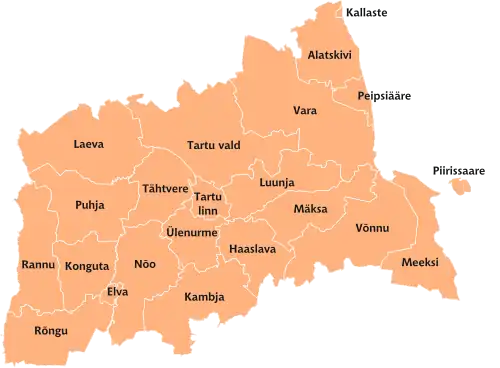 O condado está subdividido em 22 municípios: 3 municípios urbanos (Estoniano: linn - cidade) e 19 municípios rurais (Estoniano: vallad - comunas).