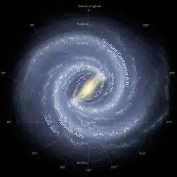 - ↑ Astrophysicist team (1 de dezembro de 2005). «Earth's location in the Milky Way». NASA. Consultado em 11 de junho de 2008