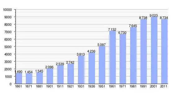 | Variação demográfica do município entre 1861 e 2011[3] |