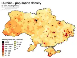 | • Estimativa para 2020 (excluindo a Crimeia e Sebastopol)[1] | 41 575 748 hab. |