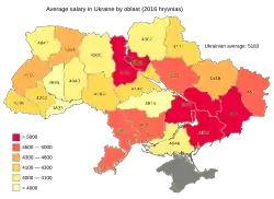 - ↑ «Середня заробітна плата за регіонами за місяць у 2013 році (em português: Salários médios por região em relação a 2013)» 🔗 (em ucraniano). Governo da Ucrânia. 2013. Consultado em 13 de março de 2018. Arquivado do original em 23 de dezembro de 2017
