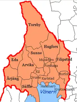 Inclui atualmente a província histórica da Värmland, assim como uma pequena parte de Dalarna e da Dalsland. Por outro lado, não conta com uma pequena parcela que pertence ao condado de Örebro. [3] [2]