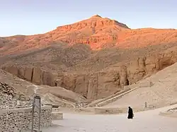 As Montanhas de Tebas são dominadas pelo pico do al-Qurn, conhecido pelos antigos egípcios como ta dehent, ou "O Pico".[17] Ele possui uma aparência que se assemelha a uma pirâmide, e é provável que ele tenha influenciado as pirâmides do Reino Antigo, mais de mil anos antes dos primeiros sepultamentos reais no vale.[18][19] Sua posição isolada também resultava em um acesso reduzido, e uma polícia especial (os Medjai) era capaz de guardar a necrópole.[20]