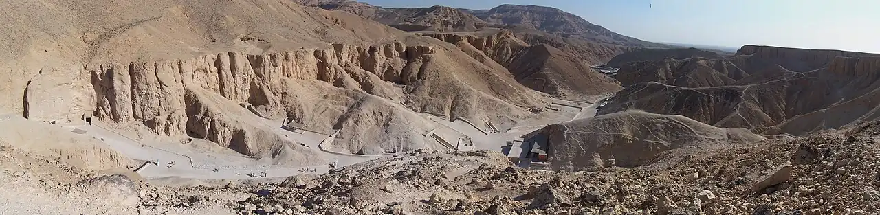 - 1 2 3 «Geography and Geology of the Valley». Theban Mapping Project. Consultado em 18 de julho de 2012. Arquivado do original em 5 de março de 2012