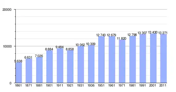 | Variação demográfica do município entre 1861 e 2011[3] |