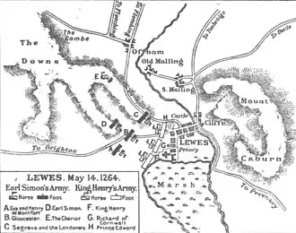 - ↑ «The Battlefields Hub → Medieval → The Battle of Battle of Lewes». www.battlefieldstrust.com. Consultado em 14 de maio de 2024