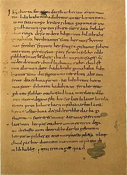 A língua do texto é uma mistura entre o saxão antigo e o alto alemão antigo (dialeto bávaro antigo). A razão para essa estranha mistura não é conhecida. Sabe-se, porém, que o texto foi escrito por dois escribas distintos.