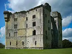 No norte da Inglaterra, melhorias na segurança da fronteira escocesa e a ascensão de grandes famílias nobres como os Percy e os Neville [en], encorajaram um aumento na construção de castelos no final do século XIV.[169] Palácios-fortalezas como Raby, Bolton e Castelo de Warkworth tomaram os estilos de castelos quadrangulares do sul e combinaram-nos com torres-chave ou torres de menagem excepcionalmente grandes para formar um estilo norte distinto.[170] Construídos por grandes casas nobres, estes castelos eram tipicamente ainda mais opulentos do que os construídos pelos novos ricos do sul.[171] Eles marcaram o que o historiador Anthony Emery descreveu como um "segundo pico da construção de castelos na Inglaterra e no País de Gales", após os designs eduardinos no final do século XIV.[172]