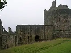 Os desenvolvimentos se espalharam para as possessões anglo-normandas na Irlanda, onde esse estilo inglês de castelos dominou durante todo o século XIII, embora a deterioração da economia irlandesa no século XIV tenha trazido um fim a essa onda de construção.[111] Na Escócia, Alexandre II e Alexandre III empreenderam uma série de projetos de construção de castelos no estilo moderno, embora a morte prematura de Alexandre III tenha desencadeado conflito na Escócia e a intervenção inglesa sob Eduardo I em 1296. Nas subsequentes Guerras de independência da Escócia, a construção de castelos na Escócia mudou de rumo, afastando-se da construção de castelos maiores e mais convencionais com muralhas cortina.[112] Os escoceses adotaram a política de depredação, ou destruir deliberadamente, castelos capturados na Escócia dos ingleses para evitar seu reuso em invasões subsequentes – a maioria dos novos castelos escoceses construídos por nobres eram do tipo casa-torre; os poucos castelos maiores construídos na Escócia eram tipicamente castelos reais, construídos por ordem dos reis escoceses.[113]