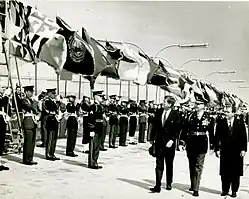 John F. Kennedy durante a visita do então presidente João Goulart aos Estados Unidos em 1962. Posteriormente descobriu-se que o presidente estadunidense planejava invadir militarmente o Brasil para depor o governo de João Goulart[25][43]