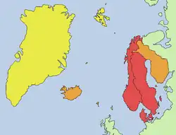 Num sentido mais amplo, o termo pode também abranger a Finlândia, e até a Islândia, as Ilhas Faroé, as ilhas Åland e a Groenlândia.[1] Por vezes, no âmbito anglo-saxónico, o conjunto Escandinávia, Finlândia e regiões russas mais próximas recebe também a designação Fino-Escandinávia (em inglês: Fenno-Scandinavia).[2]
