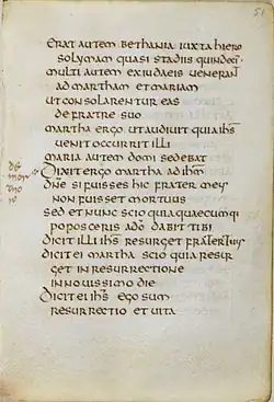 - Milner, John, "Account of an Ancient Manuscript of the St John's Gospel", in Archaeologia, Volume xvi (1812), pages 17–21 online text, acesso em 3 de Março de 2012.