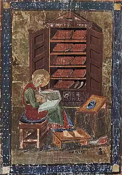 - ↑ Avrin, p. 310–311: Brown (2003), p. 66–69 sobre "ícones de livros".