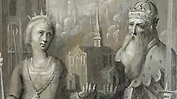 ![]() Imagem de Gisela e Everardo na Abadia de Cysoing. | |