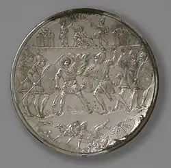 - ↑ A analogia entre as façanhas de David e os sucessos de Heráclio não é um consenso. Ao contrário, Ruth Leader vê isso como um exemplo da cristianização da arte bizantina com uma presença crescente de cenas religiosas na criação artística (ver Ruth Leader, "The David Plates Revisited: Transforming the Secular in Early Byzantium", Art Bulletin, vol. 82, 2000, pp. 407-427).