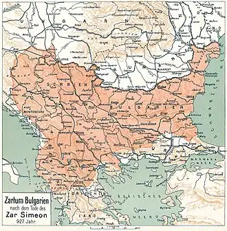 - ↑ a b Runciman, Steven (1930). A History of the First Bulgarian Empire (em inglês). [S.l.]: G. Bell & sons. ISBN 9780598749222