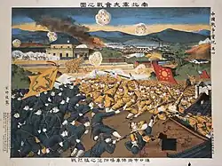 Em 1884, a China Qing obteve concessões na Coreia, como a concessão chinesa de Incheon,[114] mas os coreanos pró-japoneses em Seul lideraram o Golpe de Gapsin. As tensões entre a China e o Japão aumentaram depois que a China interveio para suprimir a revolta. O primeiro-ministro japonês Itō Hirobumi e Li Hongzhang assinaram a Convenção de Tientsin, um acordo para retirar as tropas simultaneamente, mas a Primeira Guerra Sino-Japonesa de 1895 foi uma humilhação militar. O Tratado de Shimonoseki reconheceu a independência coreana e cedeu Taiwan e as Ilhas Pescadores ao Japão. Os termos poderiam ter sido mais duros, mas quando um cidadão japonês atacou e feriu Li Hongzhang, um clamor internacional envergonhou os japoneses a revisá-los. O acordo original estipulava a cessão da Península de Liaodong ao Japão, mas a Rússia, com seus próprios desígnios sobre o território, juntamente com a Alemanha e a França, na Tríplice Intervenção, pressionou com sucesso os japoneses a abandonarem a península.