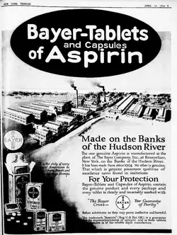 Diante da crescente concorrência legal e ilegal pela ASA comercializada globalmente, a Bayer trabalhou para consolidar a conexão entre Bayer e Aspirina. Uma estratégia desenvolvida foi mudar da distribuição em pó de aspirina para os farmacêuticos para a forma de pílula compactada para a distribuição de comprimidos padronizados - completos com o logotipo distintivo da Bayer. Em 1903 a empresa estabeleceu uma subsidiária nos Estados Unidos, com uma fábrica convertida em Rensselaer (Nova Iorque), para produzir aspirina para o mercado estadunidense sem pagar impostos de importação. A Bayer também processou os mais flagrantes violadores de patentes e contrabandistas. As tentativas da empresa de manter suas vendas de aspirina incitaram críticas de jornalistas que difamaram a Associação Médica Americana, especialmente após a Lei de Pureza de Alimentos e Medicamentos, de 1906 , que impedia a inclusão de medicamentos de marca registrada na United States Pharmacopeia; a Bayer listou o ASA com um nome genérico intencionalmente complicado (éster de ácido monoacético do ácido salicílico) para desencorajar os médicos a se referirem a qualquer coisa além de aspirina.[2] :88–96[5] :28–31