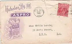 Entre a Primeira e a Segunda Guerra Mundial muitas novas marcas de aspirina e produtos à base de aspirina entraram no mercado. A empresa australiana Nicholas Proprietary Limited, por meio das agressivas estratégias de marketing de George Davies, transformou a aspro em uma marca global, com força particular na Austrália, Nova Zelândia e Reino Unido.[2] :153–161 Marcas dos Estados Unidos como Burton's Aspirin, Molloy's Aspirin, Cal-Aspirin e St. Joseph Aspirin tentaram competir com a americana Bayer, enquanto novos produtos como Cafaspirin (aspirina com cafeína) e Alka-Seltzer (uma mistura solúvel de aspirina e bicarbonato de sódio) dão novos usos à aspirina.[2] :161–162 Em 1925 a alemã Bayer tornou-se parte da IG Farben, um conglomerado de antigas empresas de tingimento; as marcas de aspirina da IG Farben e, na América Latina, a Cafiaspirina com cafeína (co-administrada com Sterling Products) competiam com aspirinas mais baratas, como por exemplo Geniol.[5] :78,90