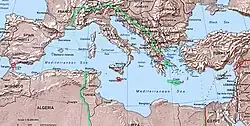 A história da região do Mediterrâneo e das culturas e povos da Bacia do Mediterrâneo é importante para compreender a origem e o desenvolvimento das culturas mesopotâmica, egípcia, cananeia, fenícia, hebraica, cartaginesa, minoica, grega, persa, ilíria, trácia, etrusca, ibérica, romana, bizantina, búlgara, árabe, berbere, otomana, cristã e islâmica. O Mar Mediterrâneo foi a via central de transporte, comércio e intercâmbio cultural entre diversos povos, abrangendo três continentes:[1] Ásia Ocidental, Norte da África e Sul da Europa.