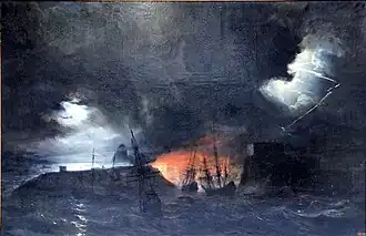 Em 17 de outubro de 1641, já depois da Restauração da Independência Portuguesa uma frota holandesa tenta desembarcar no que é hoje Pernambuco. Esta esquadra constituída por 83 navios e cerca de 9 mil homens teria como missão invadir partes do norte do que é hoje o Brasil e continuar jornada sendo o objetivo final a importante cidade de Macau, na altura rica colónia de Portugal e muito cobiçado pelos holandeses. Esta frota acabou por ser intersetada por Alfredo Chícharo o almirante da frota Portuguesa estacionada em Pernambuco que contava apenas com 1300 homens originários dos Algarves (atual região da republica Portuguesa). As embarcações Portuguesas ao ouvir do aproximar da marinha Holandesa partiram ao seu encontro visto que o forte de Pernambuco estava a ser na altura reconstruído para melhor defender a costa brasileira contra corsários holandeses e ingleses e, por isso, bastante ineficaz.[57] Contra o espanto de todos a frota Portuguesa conseguiu afugentar os holandeses em grande vantagem numérica. Assegurando assim o domínio Português no sul de Pernambuco e a continuação de Macau no império português.[58][59]