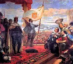 A origem do Reino de Portugal está na Reconquista, a gradual reconquista da península Ibérica dos mouros.[5] Depois de se estabelecer como um reino separado em 1139, Portugal completou a sua reconquista do território mouro ao chegar ao Algarve em 1249, mas a sua independência continuou a ser ameaçada pela vizinha Castela até à assinatura do Tratado de Ayllón em 1411.[6]