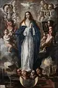 Em Milão, o primeiro registo de Leonardo da Vinci é um contrato de uma Confraria religiosa intitulada Imaculada Conceição, datado de 25 de abril de 1483, para a pintura de um retábulo para abrilhantar o altar da capela de São Francisco, o Grande.[19] O resultado seria o terceiro mais importante trabalho pictórico do artista, A Virgem dos Rochedos.[nb 27][85][86][85][87]