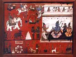 Iama, o senhor da morte Hindu, presidindo sua corte no inferno