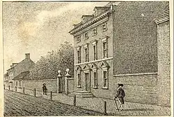 A construção da Casa Branca (então chamada de "Casa do Presidente") começou em 1792.[86][87] Washington lançou a pedra fundamental do Capitólio dos Estados Unidos (então chamado de "Casa do Congresso") em 18 de setembro de 1793.[88][89] John Adams, sucessor de Washington, mudou-se para a Casa Branca em novembro de 1800;[90] e, nesse mesmo mês, o Congresso realizou sua primeira sessão no Capitólio.[91] Em fevereiro seguinte, o Congresso aprovou a lei orgânica do Distrito de Colúmbia de 1801 [en], que oficialmente organizou o Distrito de Columbia, nomeando o Congresso como a sua autoridade exclusiva de governo, de acordo com a Constituição.[92]