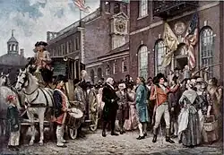 Com a Tomada da Bastilha em 14 de julho de 1789, a Revolução Francesa foi conflagrada. O público estadunidense, lembrando da ajuda fornecida pelos franceses durante a Guerra Revolucionária Americana, demonstrou grande entusiasmo e esperava por reformas democráticas que solidificassem a aliança franco-americana e transformassem a França em uma aliada republicana contra a Grã-Bretanha aristocrática e monárquica.[175] Pouco depois da queda da Bastilha, a chave principal da prisão foi entregue ao Marquês de Lafayette, um francês que havia servido sob o comando de Washington durante a Guerra Revolucionária Americana. Em um gesto de otimismo quanto ao sucesso da revolução, Lafayette enviou a chave a Washington, que a exibiu em destaque na mansão executiva.[176] O veterano de guerra John Skey Eustace [en] mantinha Washington informado sobre os eventos da Revolução Francesa.[177]