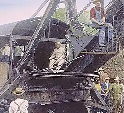 Roosevelt buscou a criação de um canal através da América Central que ligaria o Oceano Atlântico e o Oceano Pacífico. A maioria dos congressistas preferia que o canal atravessasse a Nicarágua, que ansiava por um acordo, mas Roosevelt preferia o istmo do Panamá, sob o frouxo controle da Colômbia. A Colômbia estava envolvida em uma guerra civil desde 1898, e uma tentativa anterior de construir um canal através do Panamá havia falhado sob a liderança de Ferdinand de Lesseps. Uma comissão presidencial nomeada por McKinley recomendou a construção do canal através da Nicarágua, mas observou que um canal através do Panamá poderia ser menos caro e poderia ser concluído mais rapidamente.[104] Após um longo debate, o Congresso aprovou a Lei Spooner de 1902, que concedeu a Roosevelt US$ 170 milhões para construir o Canal do Panamá.[105] Após a aprovação da Lei Spooner, o governo Roosevelt iniciou negociações com o governo colombiano sobre a construção de um canal através do Panamá.[106]