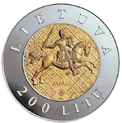 200 litas comemorativas dedicadas ao 750° aniversário da coroação de Mindaugas