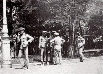 Soldados à espera de ordens no Royal Plaza, 24 de junho de 1932.